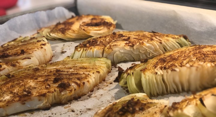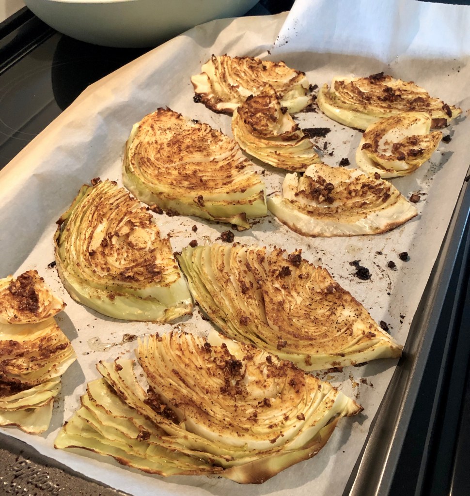 Well, friends, I’m here to tell you about the success of roasting cabbage. Smother it in garlic, olive oil, and fiery chilli powder and you’ve got yourself one happy lady.