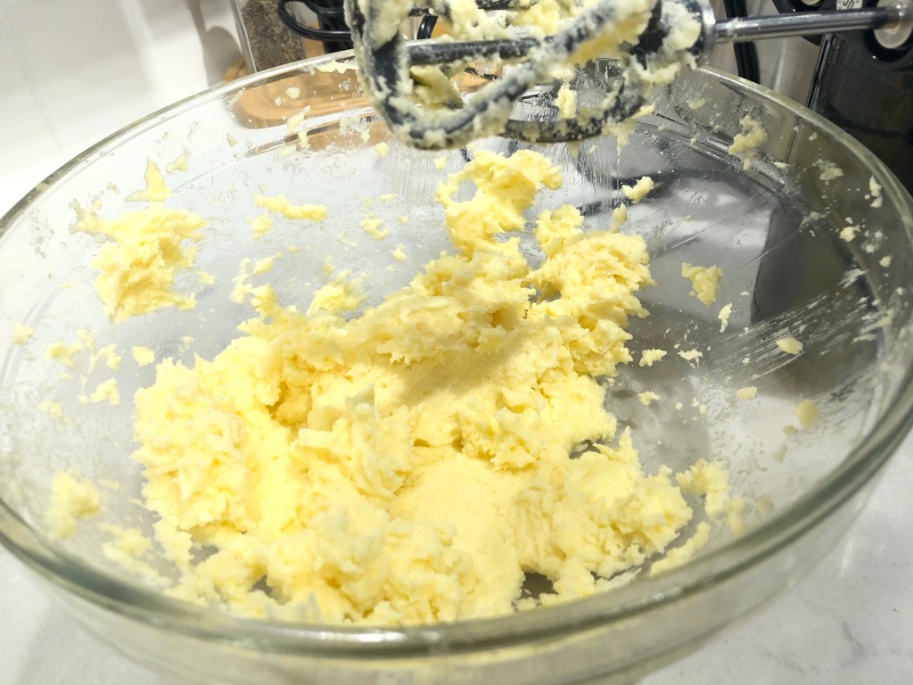 1. Set your oven temperature to 350°F . Using a hand-mixer, cream the butter and sugar together in a bowl until it turns fluffy, and light in colour. Once combined, add the egg and combine again.
