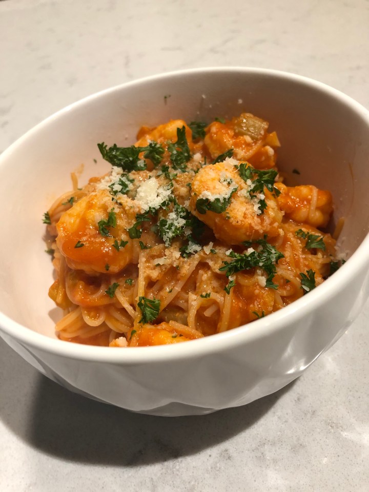Similarly, Italians celebrate Christmas Eve with the Feast of Seven Fishes. In Italian, it’s referred to as La Vigilia… sound familiar? As an homage to appreciating all of the fresh seafood that is allowed on Christmas Eve, I thought I would share a wonderful dish that features two of my favourite ingredients ever: shrimp and pasta.