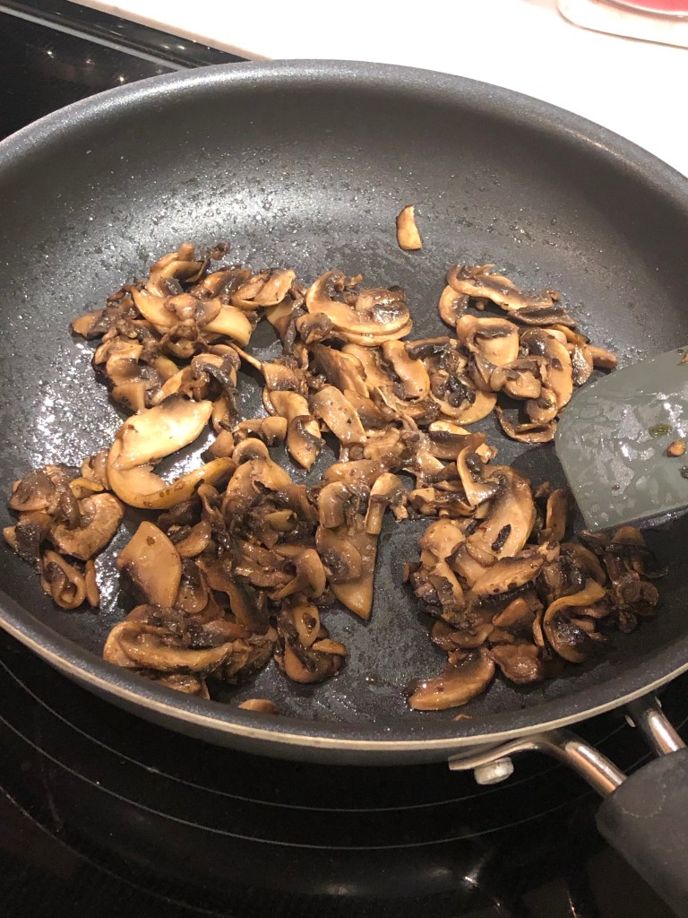 2. Saute your mushrooms (in a tablespoon of unsalted butter if you have, but vegetable oil will work well too) until browned and crisp — allow the moisture to evaporate to achieve that golden colour.
