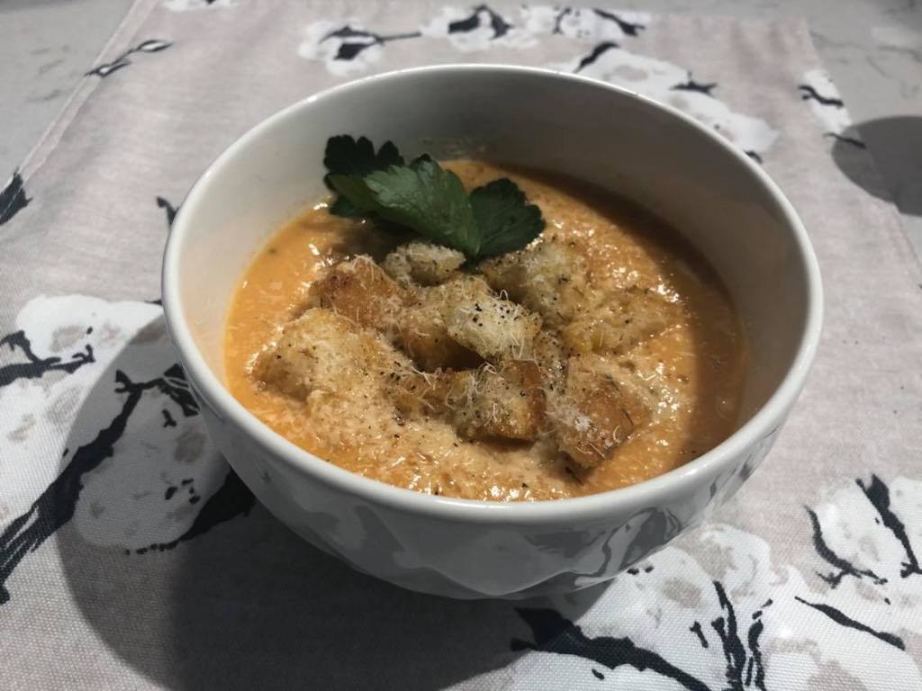 This roasted tomato soup uses less than 10 ingredients, takes a very short amount of time to prep, cook, and have on the dinner table. Bonus — I’ve added the option to make crispy lil herb croutons to go with!