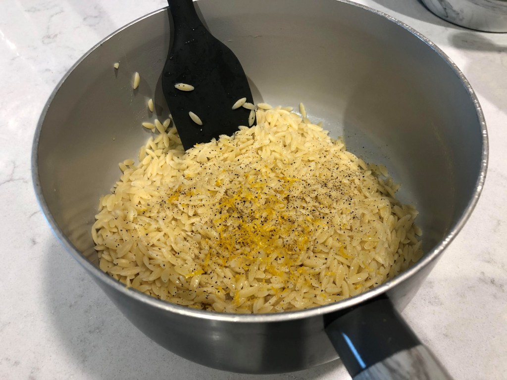 Once your water is boiling, salt like you normally would with other pasta. Cook for 8-10 minutes until al dente and drain water. As you allow the pasta to cool, pour the olive oil over the orzo and add the zest of your lemon and lemon juice. Mix together and allow to cool off completely. By doing this. you’re preventing the pasta from sticking together but the lovely fresh lemon zest will bring a citrus note to the salad. It also smells damn good.
