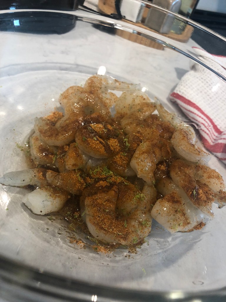 - 1 bag of raw frozen shrimp, cleaned and thawed ahead of time