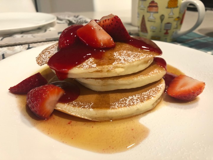 Serve with reaaal Canadian maple syrup, icing sugar, fresh fruit, or even some leftover raspberry sauce (it’s pretty delightful).