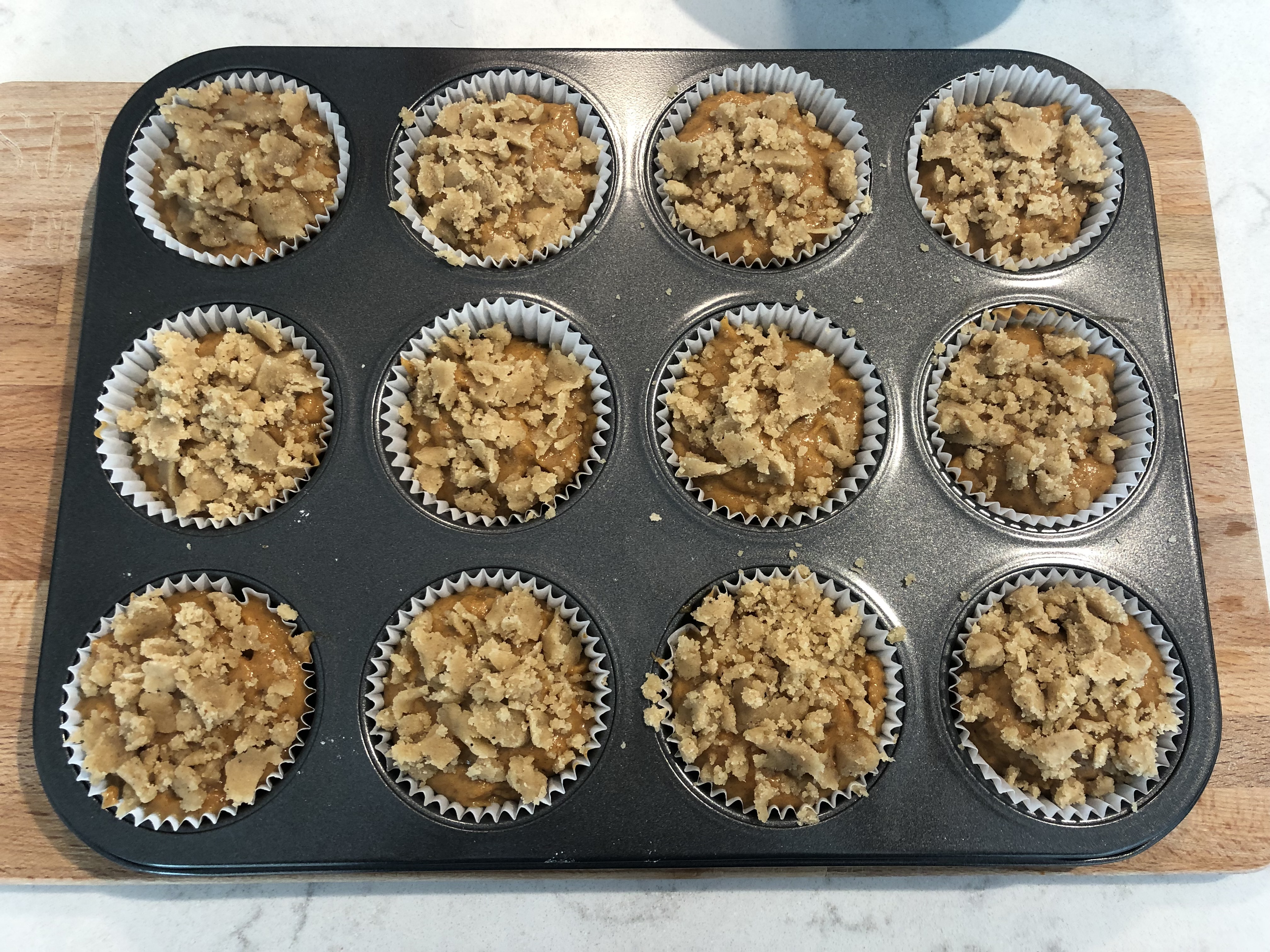 Spoon the batter into liners, filling them almost completely full.