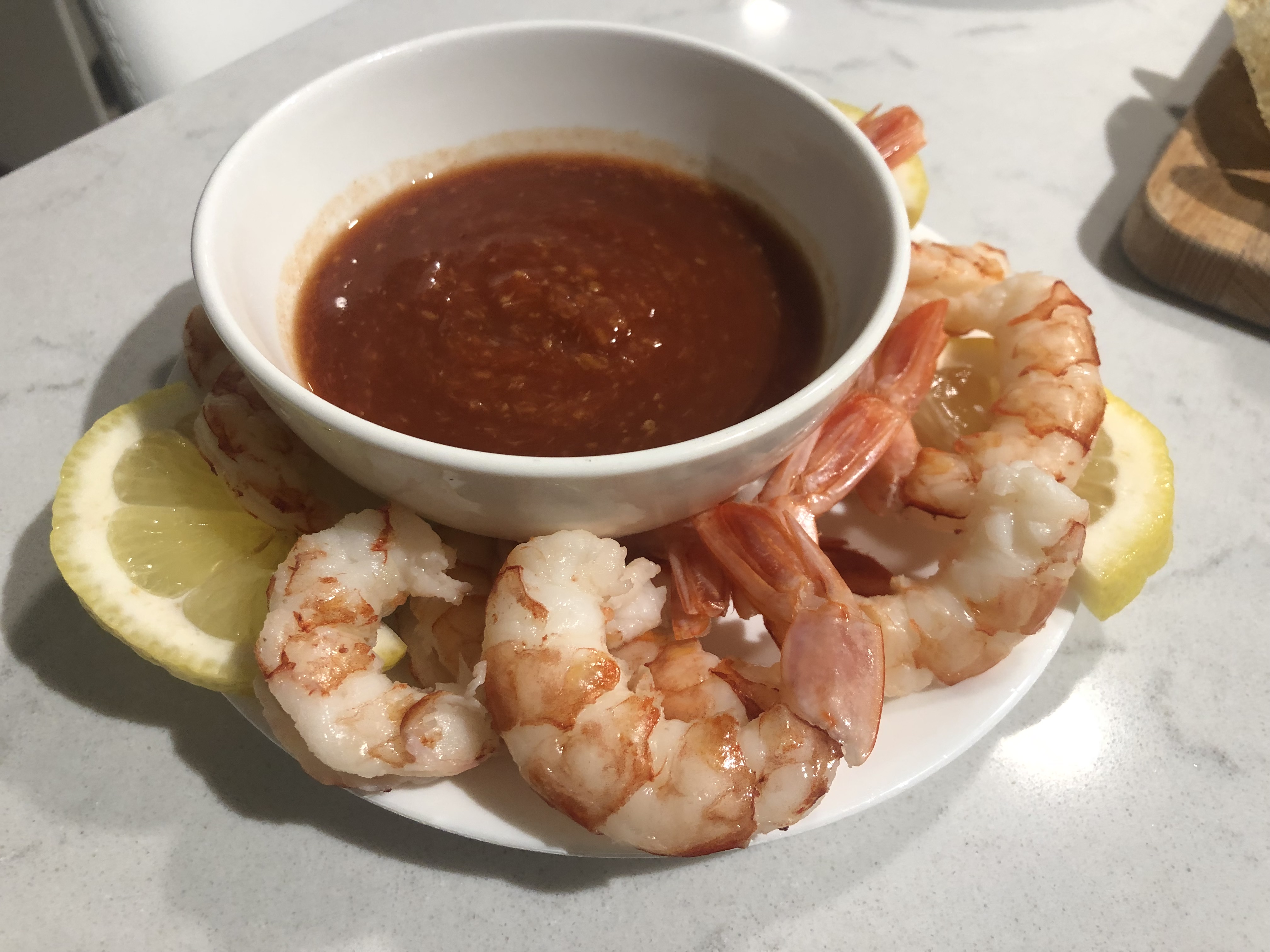 The tradition still stands, and a fondness for a really great shrimp cocktail has increased over the years. Now, instead of buying a premade shrimp ring at the store and waiting for a holiday sale, I spend the money on the protein itself and take the extra time to poach the shrimp on my own. The result? The satisfaction of making something from scratch that you would normally buy, duh! But mostly you end up with super tender shrimp.