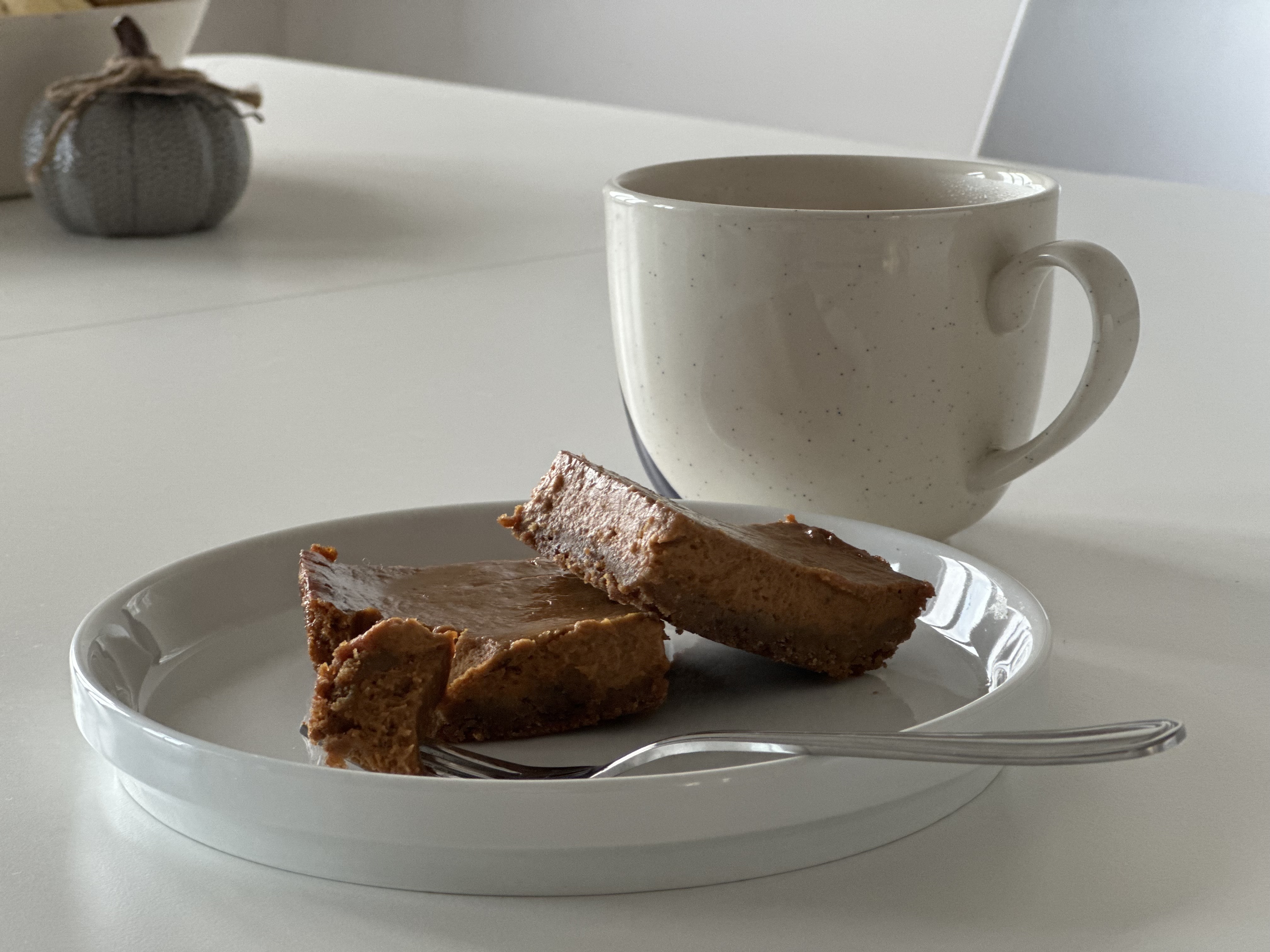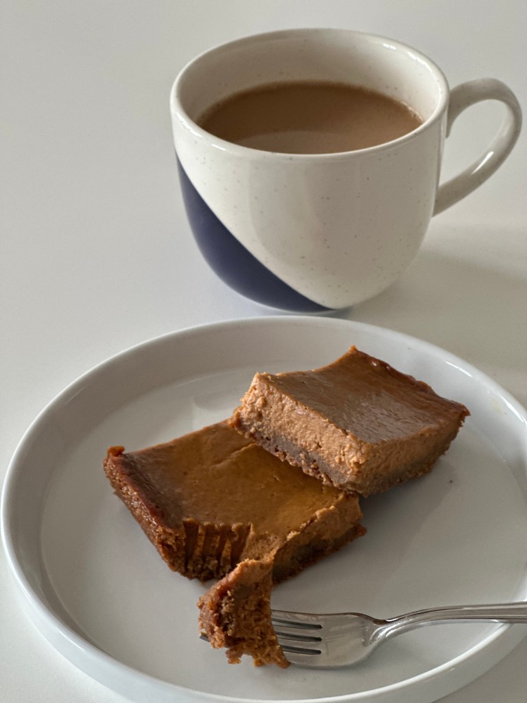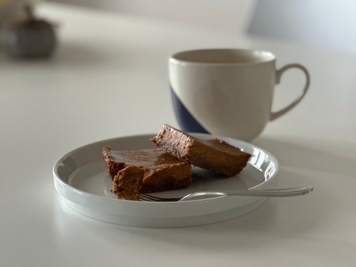 These pumpkin squares are a different take on the classic pumpkin pie we all know. They’re sweet yes, but also have a great amount of hidden spice… and here’s the kicker. Use black pepper! Who would have thought we’d be putting pepper into our baking but it brings such a great subtle spiciness to the crust and it compliments the other spices used in pumpkin pie like cloves, nutmeg, and allspice.