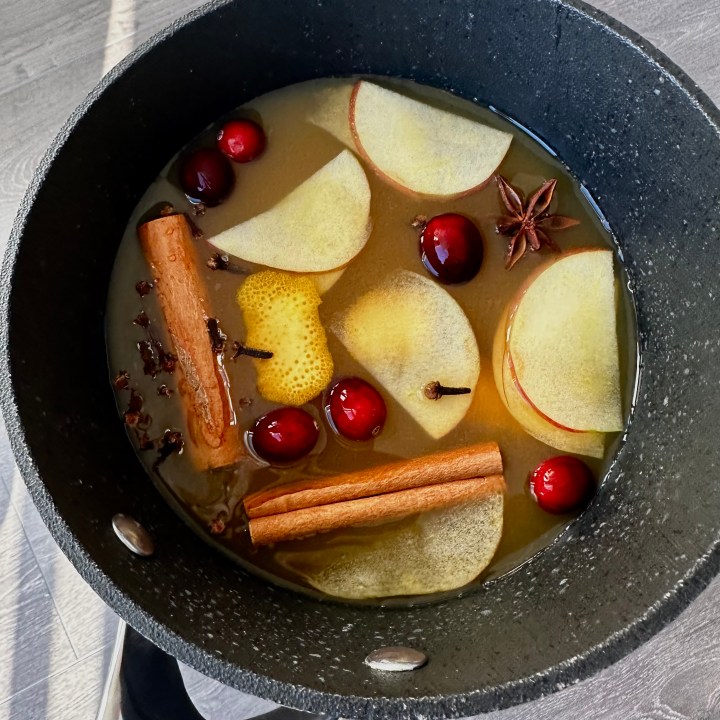 In a medium saucepot, combine all ingredients and allow to gently warm through. Pour over a mesh sieve once ready to catch all the spices and some of the pulp and then enjoy! It’s as simple as that.
