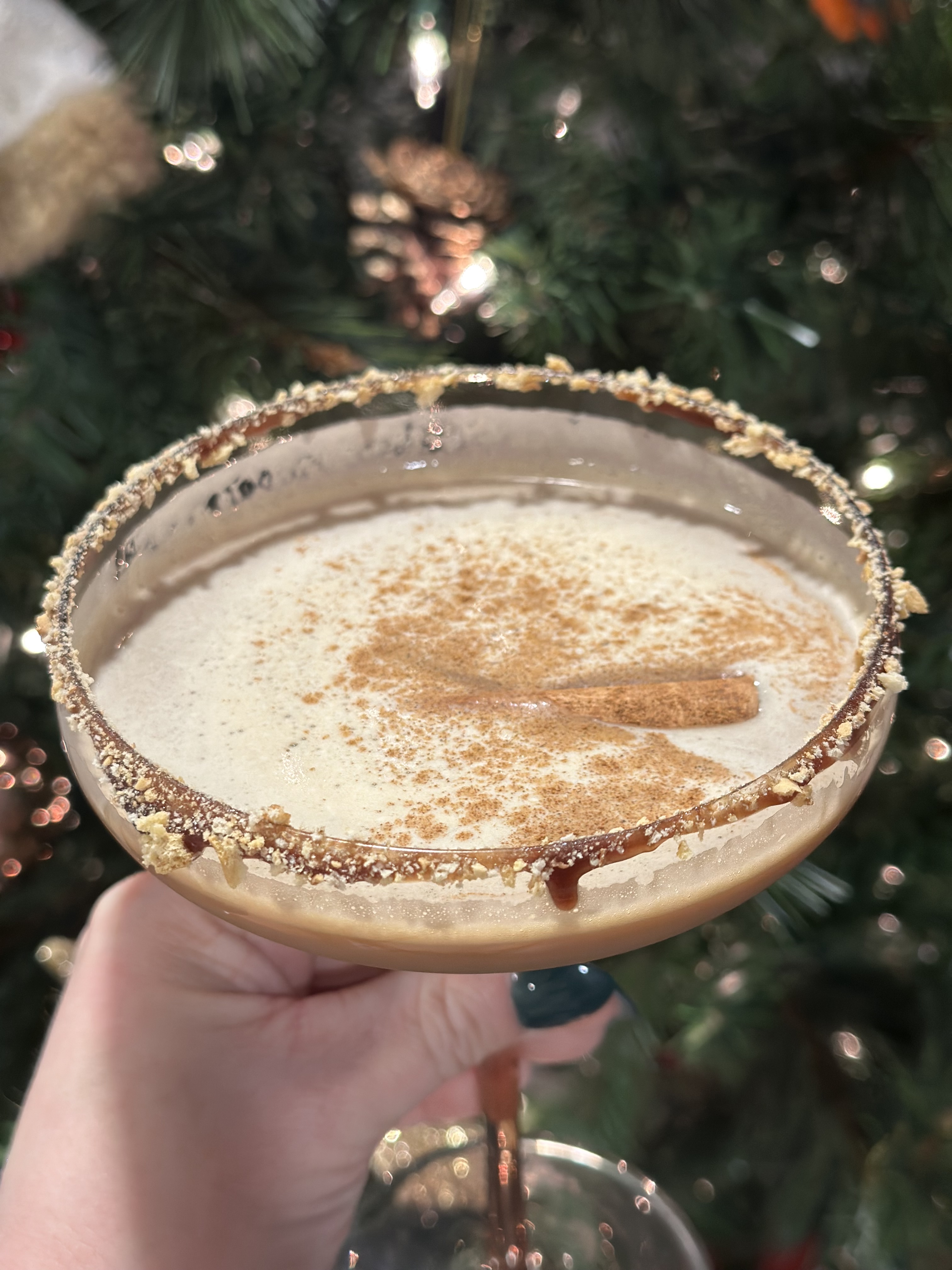 Add all the ingredients into a cocktail shaker and shake until ice cold and frosty. Serve in a glass, with a gingerbread cookie on the side or a rimmed glass with gingerbread cookie crumbs!