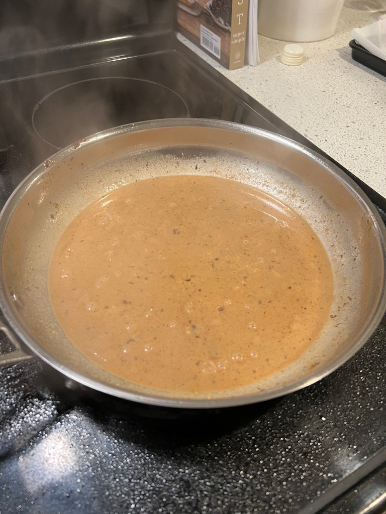 - Splash of beef/chicken broth, red wine, sherry cooking wine, brandy (anything that would pair well with steak really)